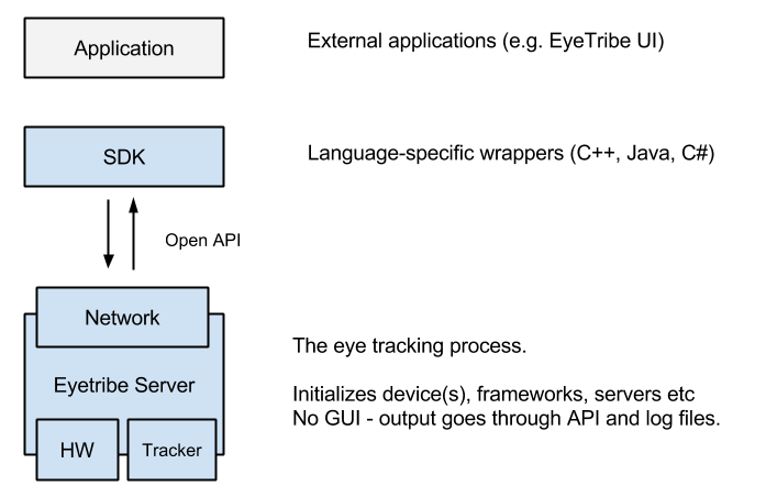 Through the tracker API, clients are able to tweak the settings of the Tracker Server, perform the calibration process, switch screens in a multi screen setup and more. The Tracker API documentation explains all interfacing option in detail.